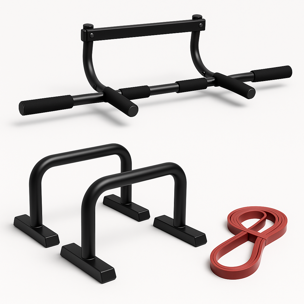 ForgeHaus Calisthenics Core Kit ā Pull-Up Bar + Parallettes + Assist Band